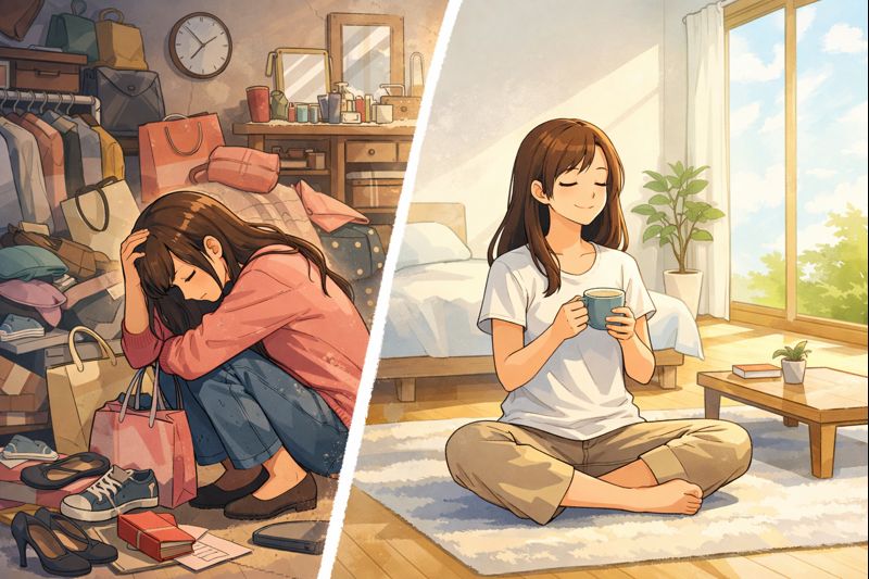一方、モノを減らして本当に必要なものだけを残すと、部屋がすっきりし、視覚的なノイズが消えます。脳が休まることで、不安感やイライラが軽減されるのです。また、不要なモノを処分する過程で「本当に必要なものは何か」を考えるようになり、自分自身の価値観がクリアになっていきます。