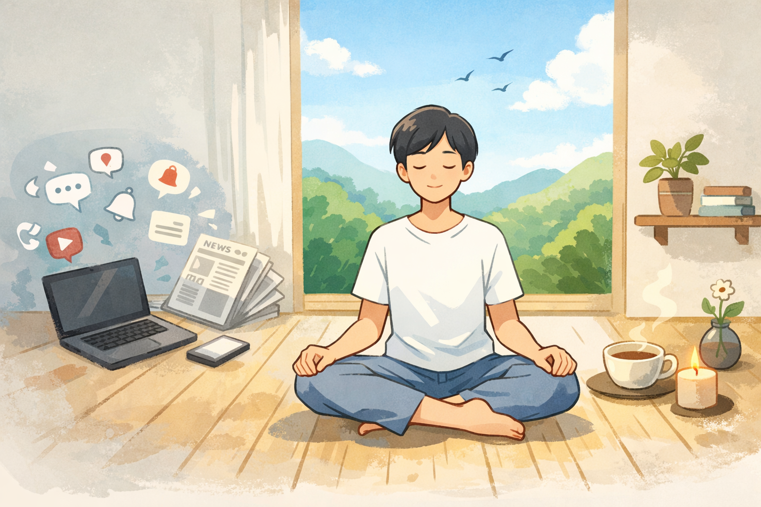 「この人は楽しそう」「なんで自分は…」と比べたり、「また怖いニュースだ」と不安になったり。それはまるで、部屋にずっと小さな雑音が流れていて、気づかないうちにイライラしてくるようなものです。