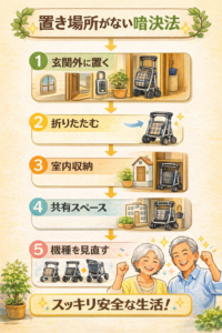 歩行器 シルバーカー 置き場所がない 解決方法として、 今すぐできる工夫や選び方を分かりやすくまとめました。